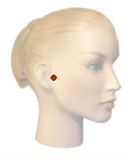 vor dem Ohr in Höhe des Jochbeins, in Vertiefung bei geöffnetem Mund.
