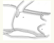 2 Querfinger unter dem Bauchnabel Zeige- und Mittelfinger aufsetzen.
